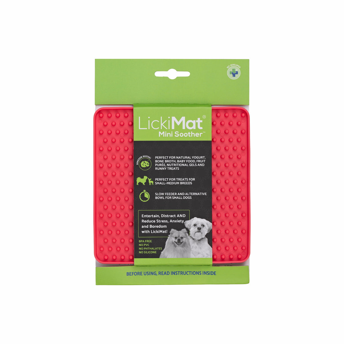 Il kit include un LickiMat Mini, perfetto per rallentare l’assunzione del cibo e trasformare lo snack in un’attività rilassante, e uno yogurt probiotico senza lattosio, senza zuccheri aggiunti e 0% grassi, ideale per supportare la flora intestinale.
